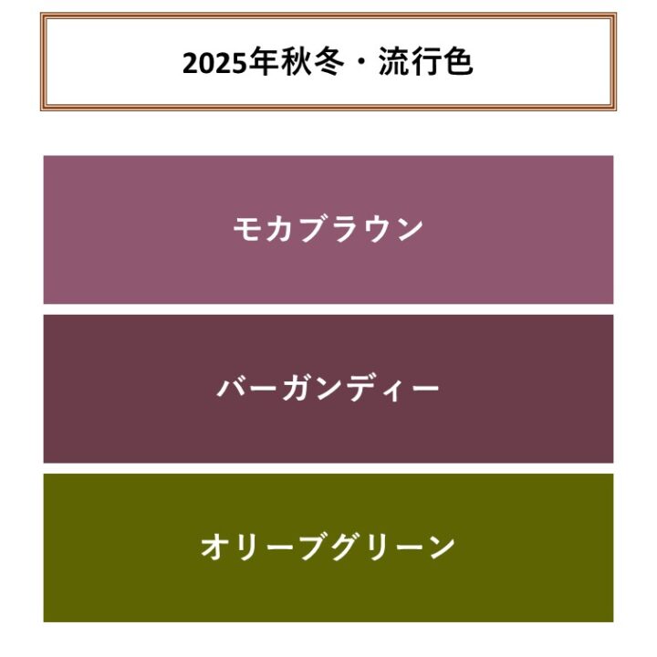 ぜひこの秋冬は、ワードローブに「モカブラウン」や「バーガンディ」を取り入れて、